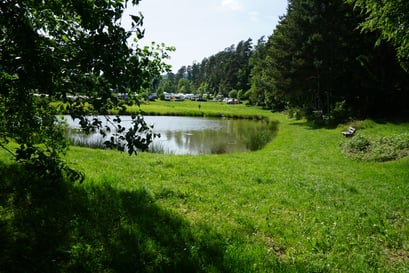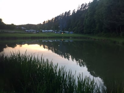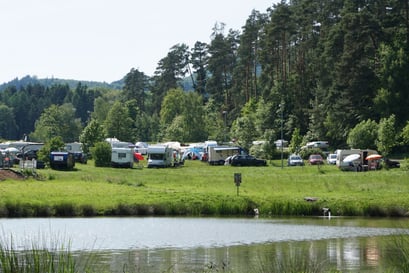 Der Campingplatz liegt auf einer großen Wiese, eingebettet zwischen einem kleinen und einem etwas größerem See, umgeben von Wald. Fußläufig erreichbar ist das Dorf Breitenbach am Herzberg, wo frau sich in einem kleinen Supermarkt mit den Nötigsten eindecken kann. Fast die gesamte untere Wiese am kleinen See ist reserviert für die Regenbogenfamilien-Gruppe. Als ich ankomme ist der Platz schon voll besiedelt mit jeder Menge Campingmobilen, Familienzelten und Kastenwagen mit Vorzelten in diversen Ausführungen. Hier und da eine Regenbogenflagge zwischen Campingroutinen: Qualmende Grills, entspanntes Sitzen und Reden um Klapptische herum. Viele Hunde. Viele Kinder. Erwachsene im Wochenend-Modus. Ich fühlte mich gleich wohl und angekommen, baute mein kleines Zelt auf und machte eine erste Begrüßungsrunde.